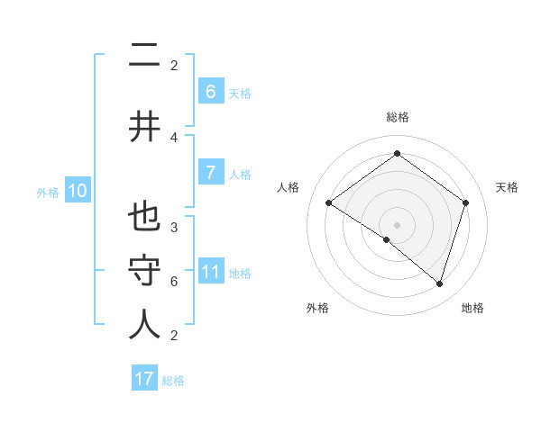 二井 也守人さんの総格は17画の4点!