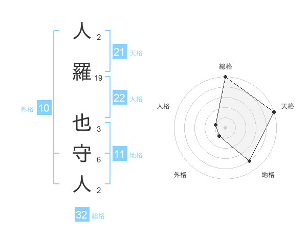 人羅 也守人さんの天格は21画の5点!