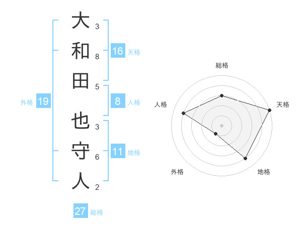 大和田 也守人さんを姓名の画数から五運を鑑定