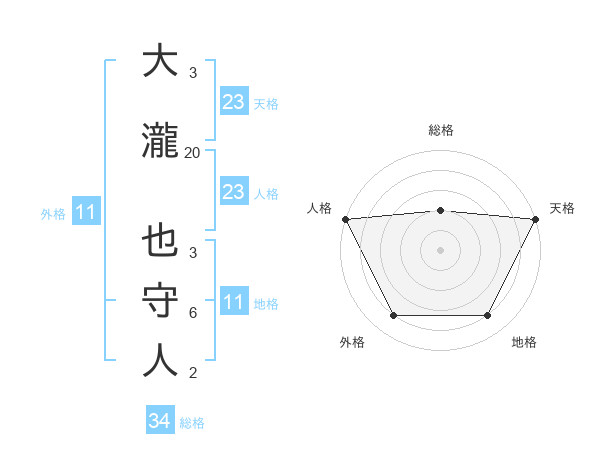大瀧 也守人さんの天格は23画の5点!