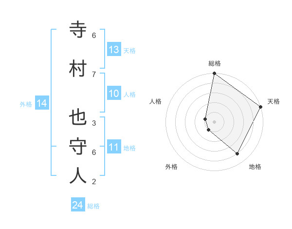 寺村 也守人さんの総格は24画の5点!