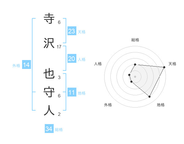 寺沢 也守人さんの天格は23画の5点!