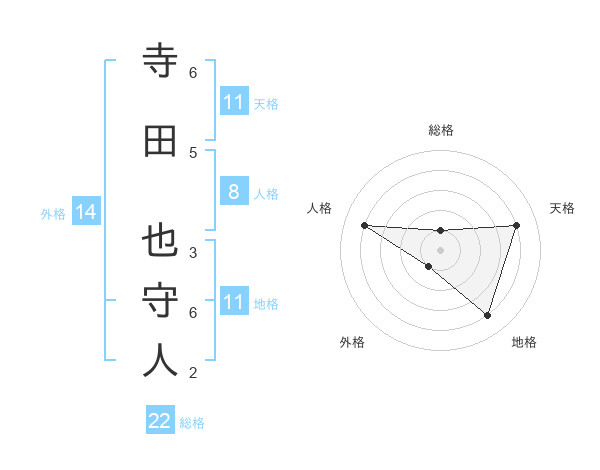 寺田 也守人さんの総格は22画の1点!