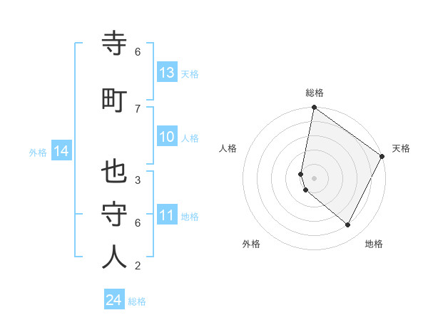寺町 也守人さんの総格は24画の5点!