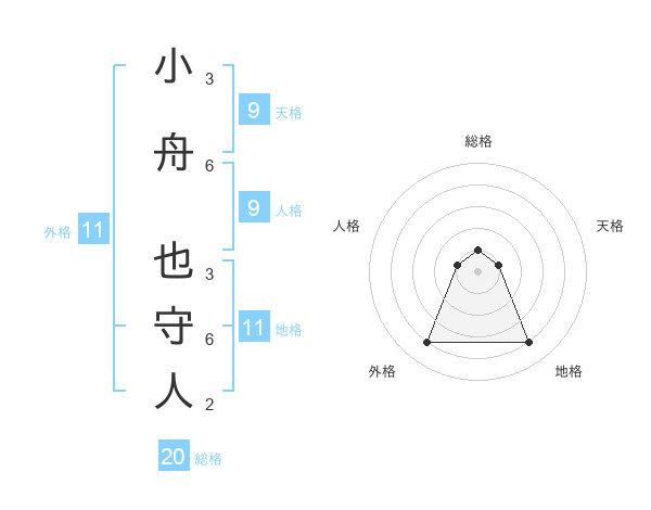 小舟 也守人さんを姓名の画数から五運を鑑定
