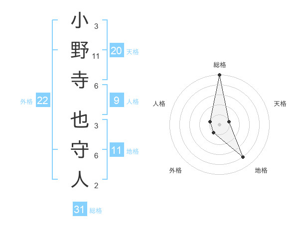 小野寺 也守人さんを姓名の画数から五運を鑑定