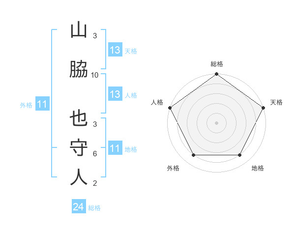 山脇 也守人さんを姓名の画数から五運を鑑定