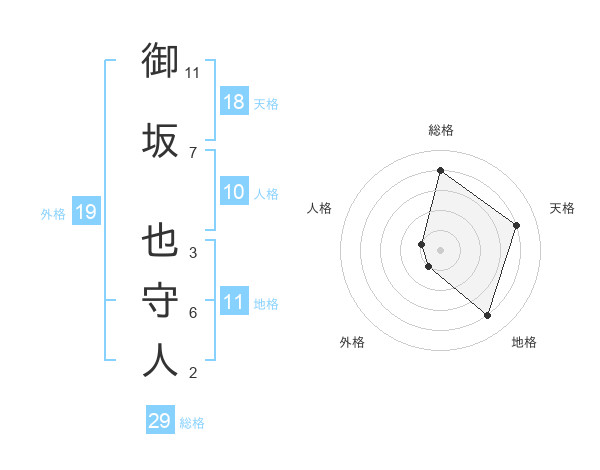 御坂 也守人さんを姓名の画数から五運を鑑定