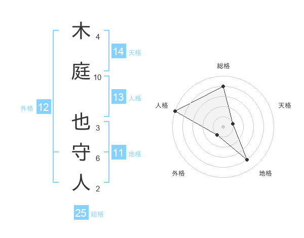 木庭 也守人さんの総格は25画の4点!