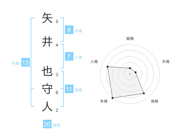 矢井 也守人さんの外格は13画の5点!