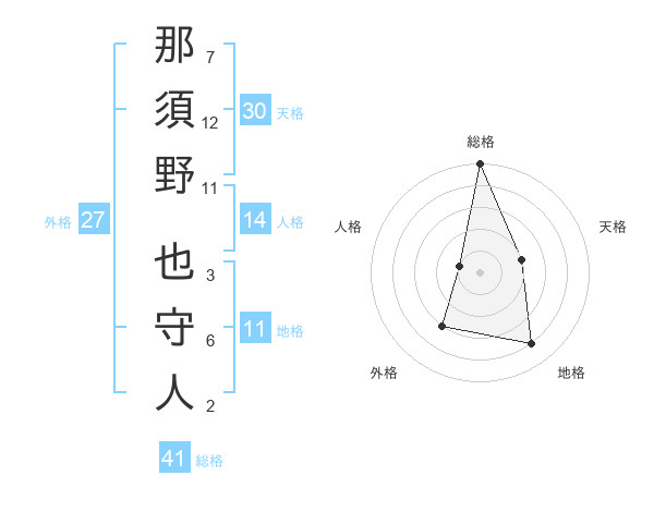 那須野 也守人さんを姓名の画数から五運を鑑定