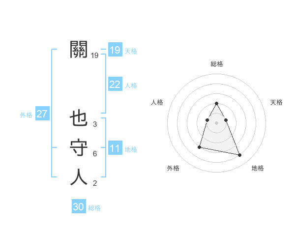 關 也守人さんの天格は19画の1点!