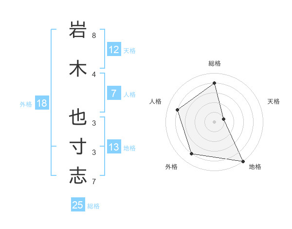 岩木 也寸志さんの総格は25画の4点!