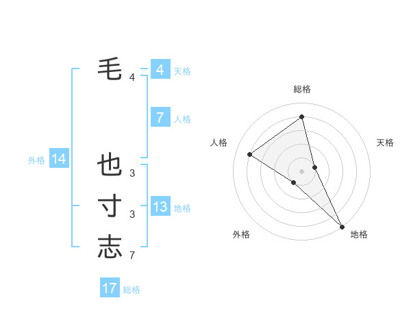 毛 也寸志さんの総格は17画の4点!