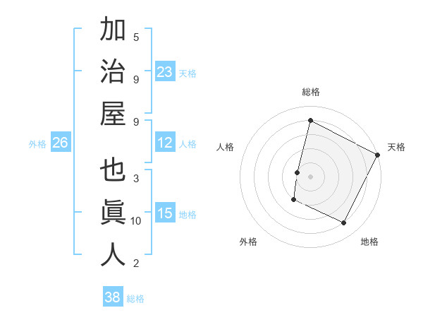 加治屋 也眞人さんの天格は23画の5点!