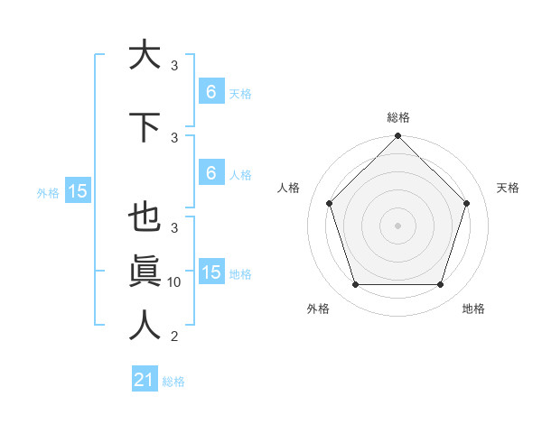 大下 也眞人さんを姓名の画数から五運を鑑定