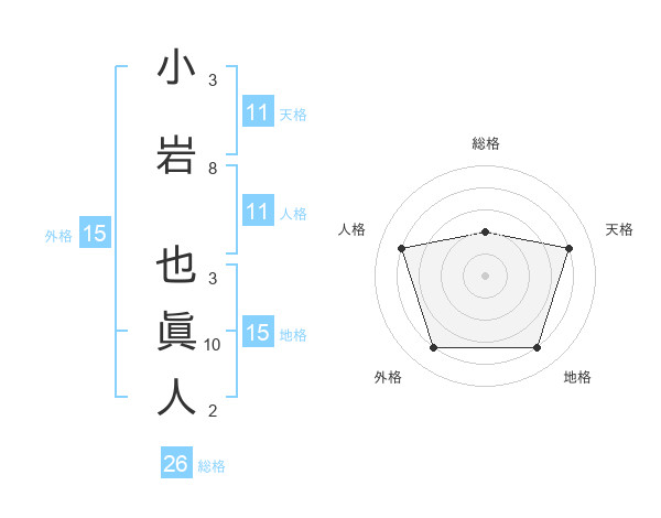 小岩 也眞人さんの総格は26画の2点!