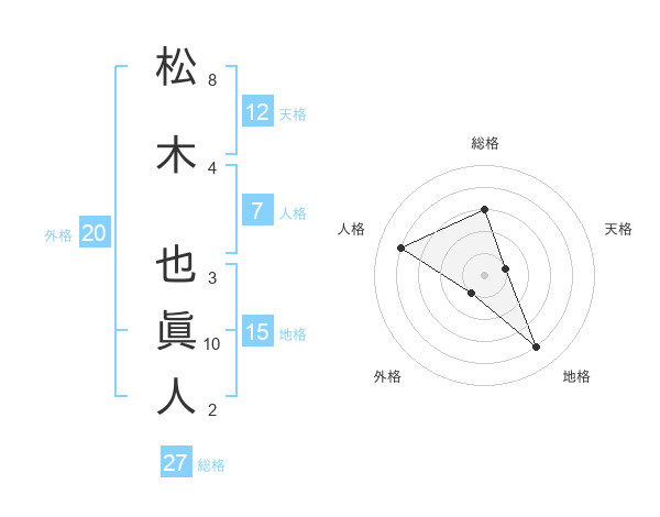 松木 也眞人さんの天格は12画の1点!
