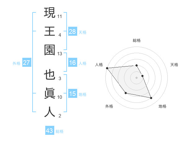 現王園 也眞人さんを姓名の画数から五運を鑑定