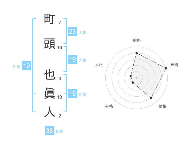 町頭 也眞人さんの総格は38画の4点!