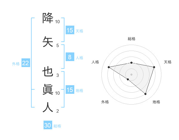 降矢 也眞人さんの天格は15画の4点!