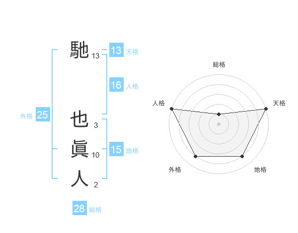 馳 也眞人さんの天格は13画の5点!