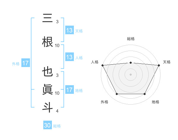 三根 也眞斗さんを姓名の画数から五運を鑑定