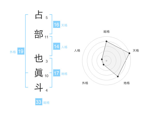 占部 也眞斗さんを姓名の画数から五運を鑑定