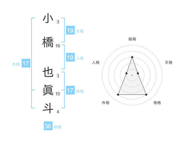 小橋 也眞斗さんを姓名の画数から五運を鑑定