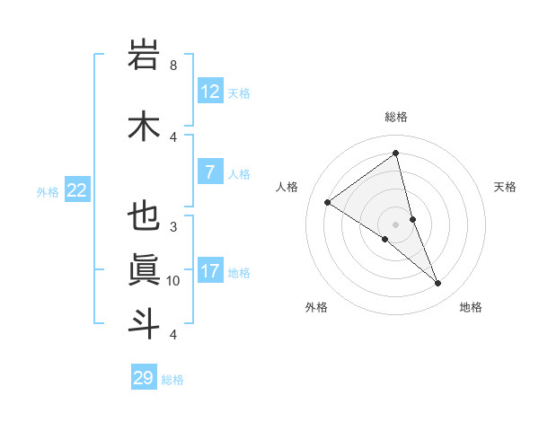 岩木 也眞斗さんの総格は29画の4点!