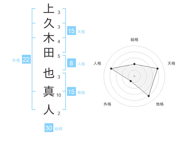 上久木田 也真人さんの天格は15画の4点!