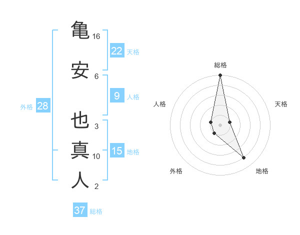 亀安 也真人さんの総格は37画の5点!