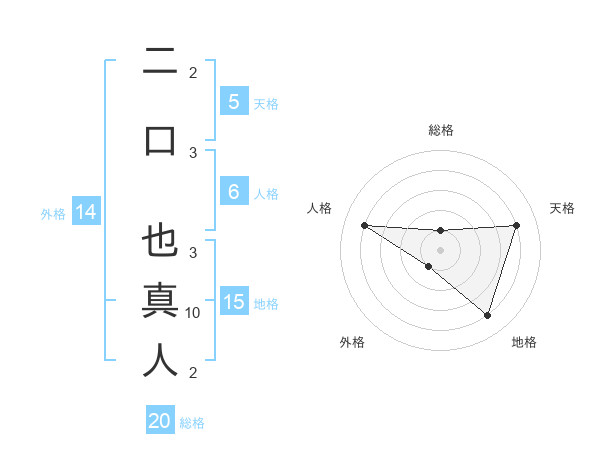 二口 也真人さんの総格は20画の1点!