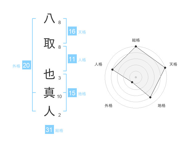 八取 也真人さんの総格は31画の5点!