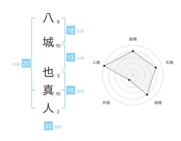 八城 也真人さんの総格は33画の4点!