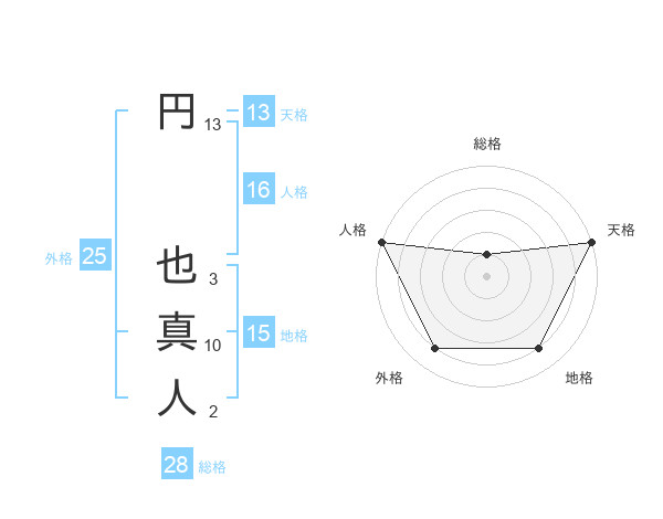 円 也真人さんの天格は13画の5点!