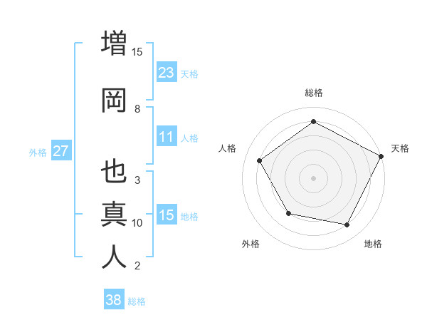 増岡 也真人さんを姓名の画数から五運を鑑定