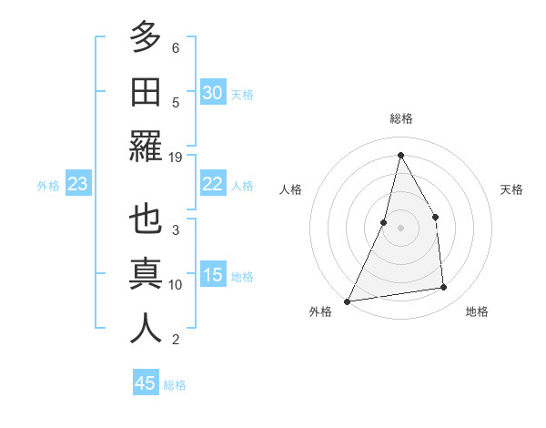 多田羅 也真人さんを姓名の画数から五運を鑑定