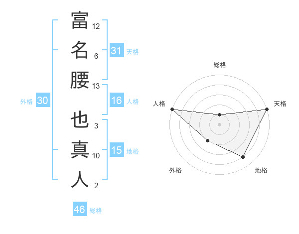 富名腰 也真人さんの天格は31画の5点!