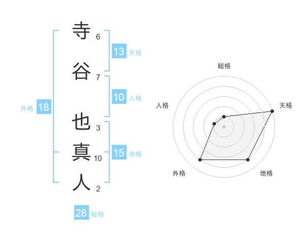 寺谷 也真人さんを姓名の画数から五運を鑑定