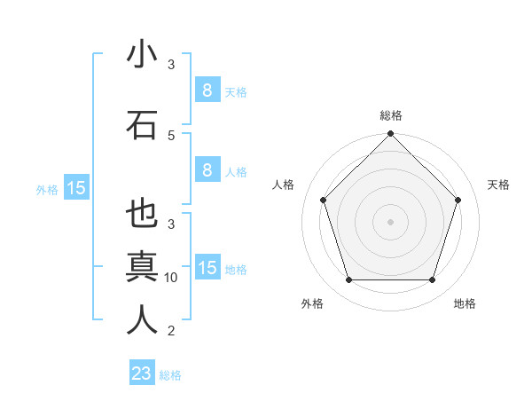 小石 也真人さんの総格は23画の5点!
