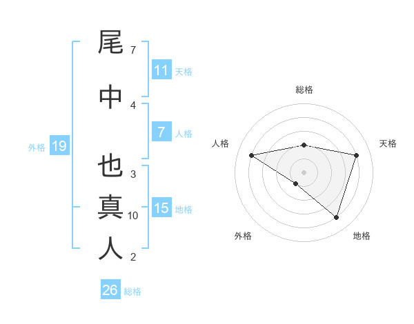 尾中 也真人さんを姓名の画数から五運を鑑定