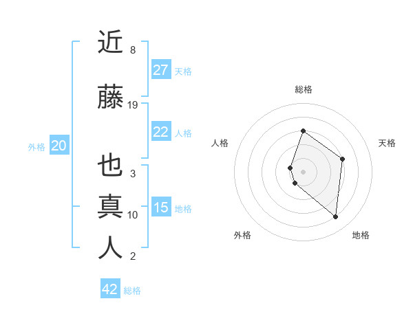 近藤 也真人さんを姓名の画数から五運を鑑定
