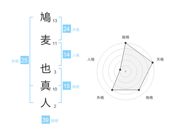 鳩麦 也真人さんの総格は39画の5点!