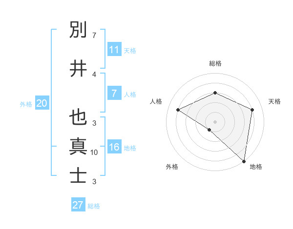 別井 也真士さんの天格は11画の4点!