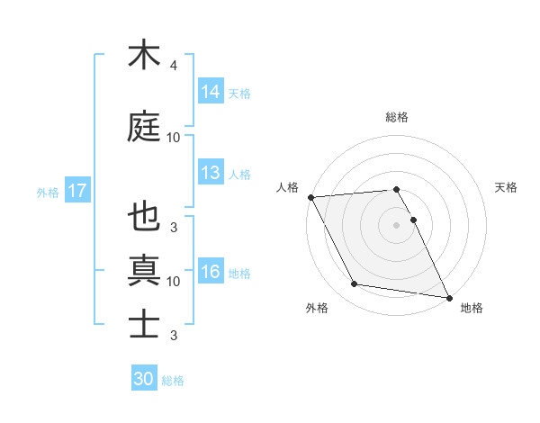 木庭 也真士さんの外格は17画の4点!