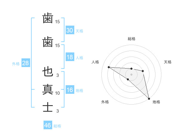歯歯 也真士さんを姓名の画数から五運を鑑定