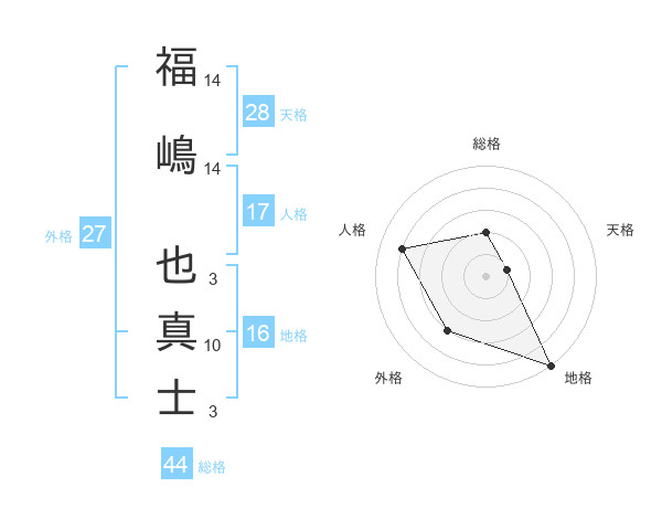 福嶋 也真士さんを姓名の画数から五運を鑑定