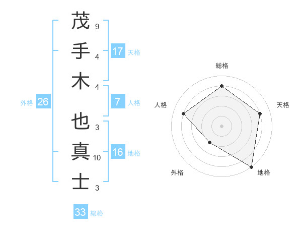 茂手木 也真士さんを姓名の画数から五運を鑑定