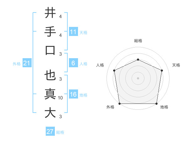 井手口 也真大さんの総格は27画の3点!